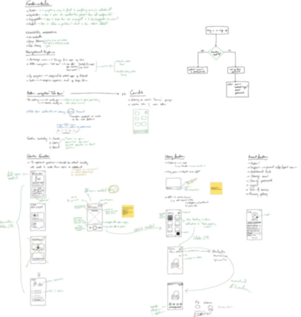 The next phase was UI/UX research and sketches for the mobile and web apps. I went through various sketches and iterations, using benchmarking and desk research to create a workable prototype that we could test.